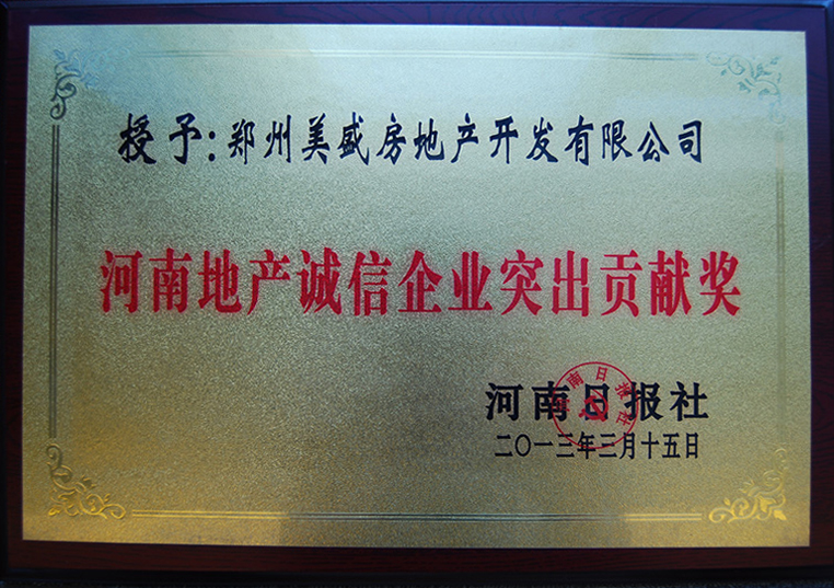 美盛地產集團 建設國家中心城市貢獻企業獎 鄭州日報