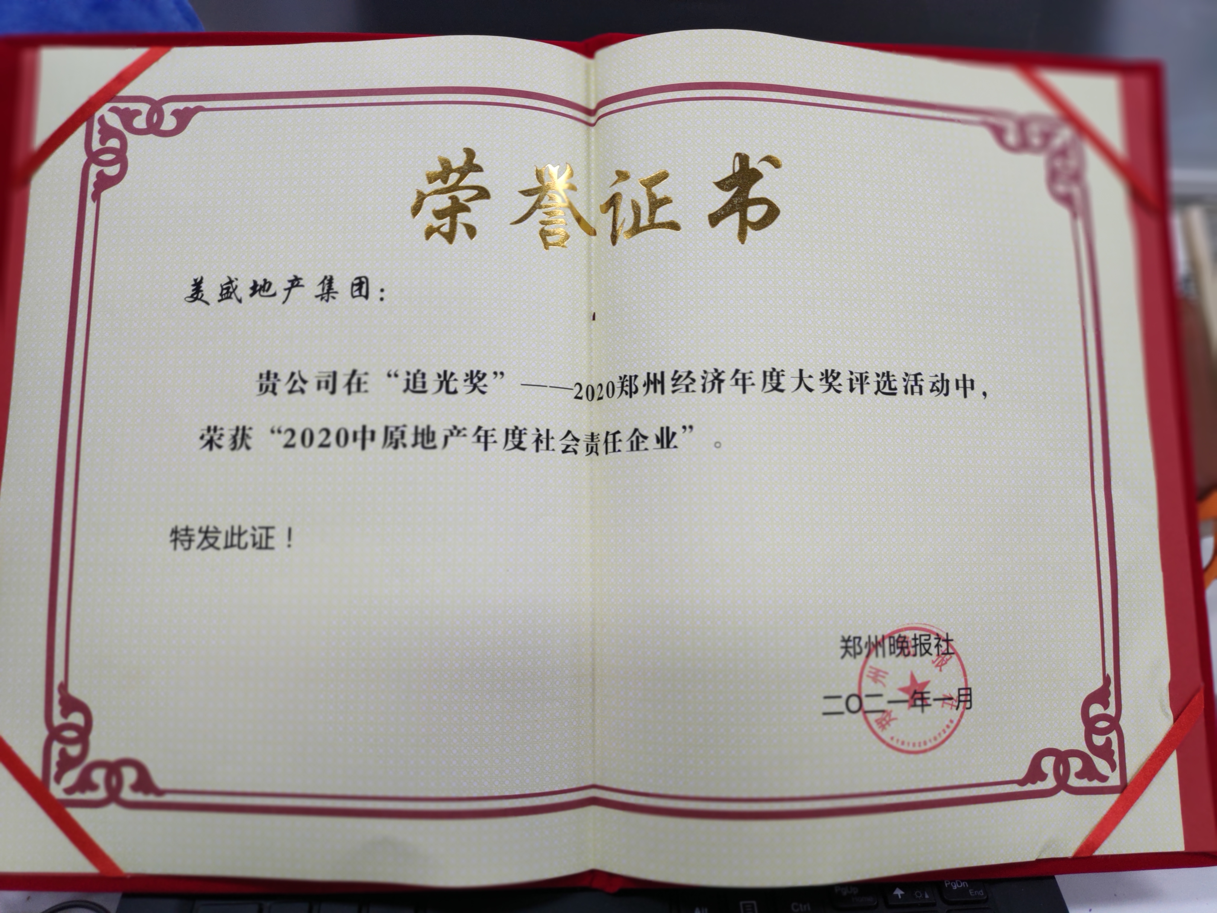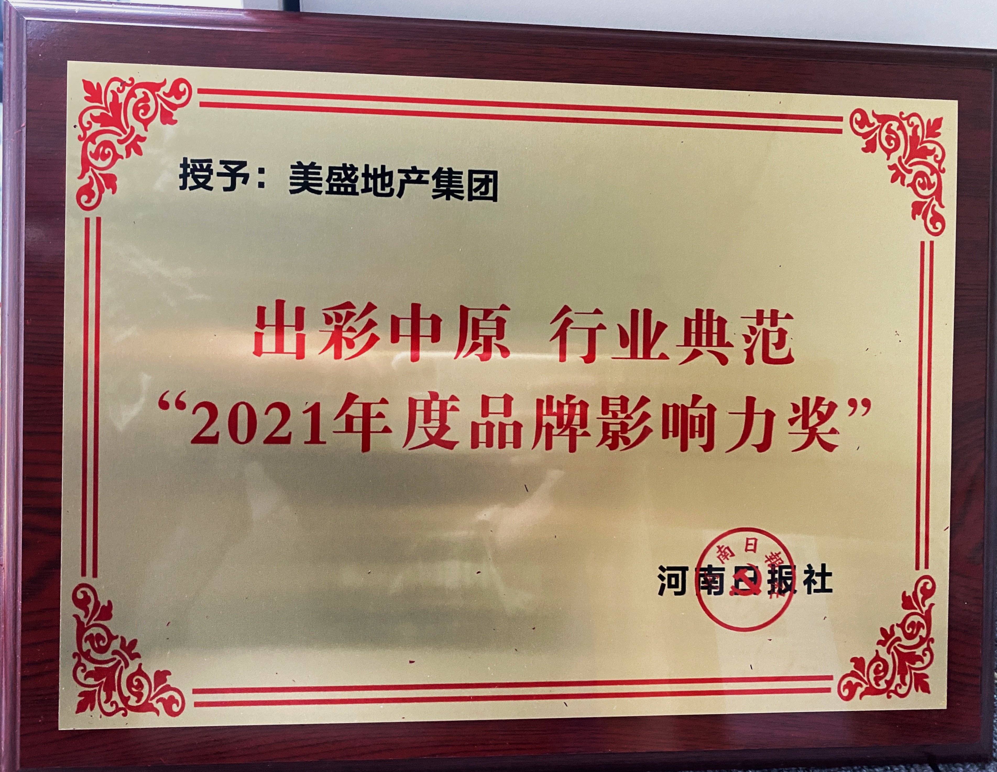 出彩中原 行業典范 2021年度品牌影響力獎 美盛集團