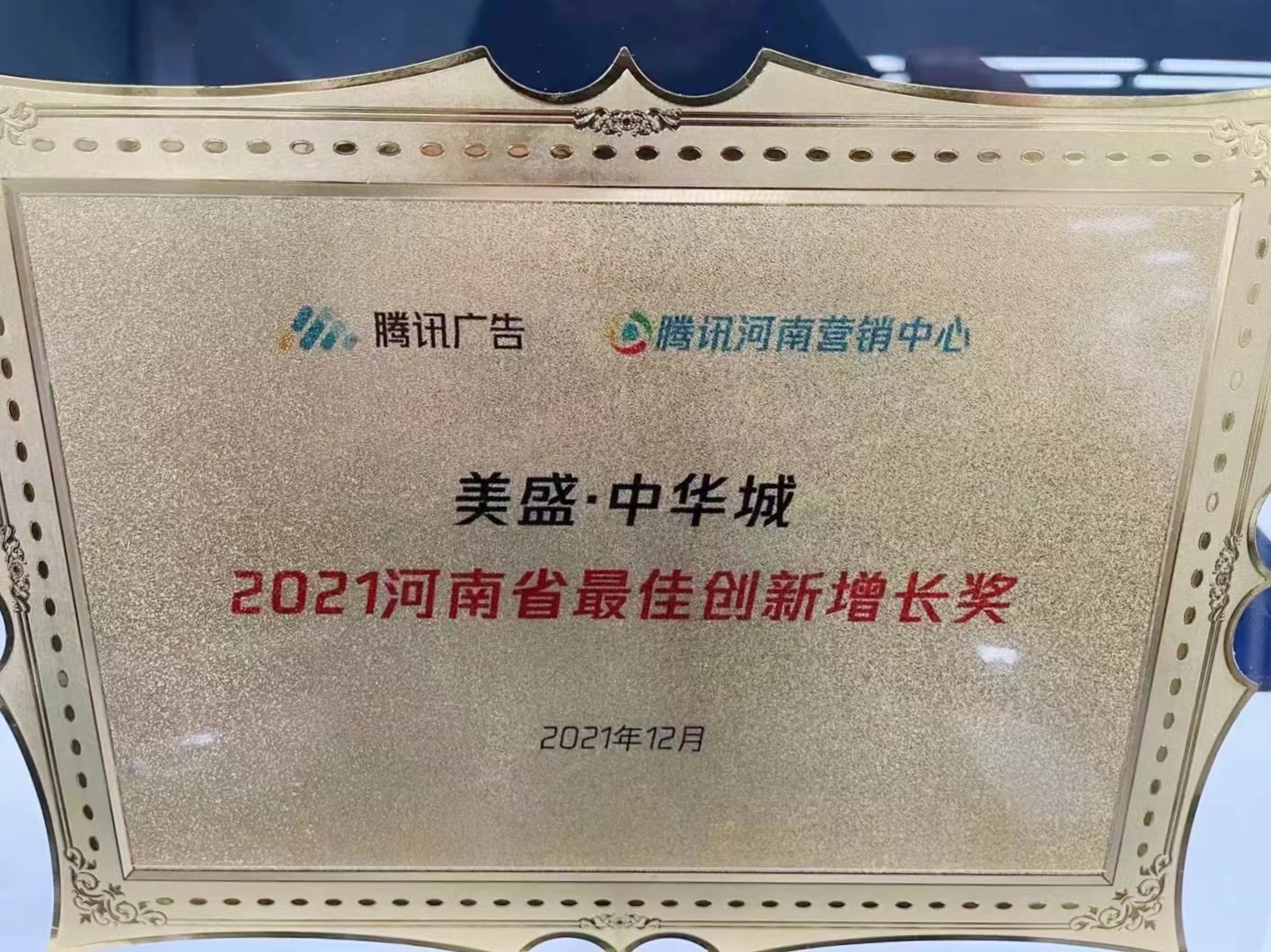 出彩中原 行業典范 2021年度區域價值獎 美盛·中華城