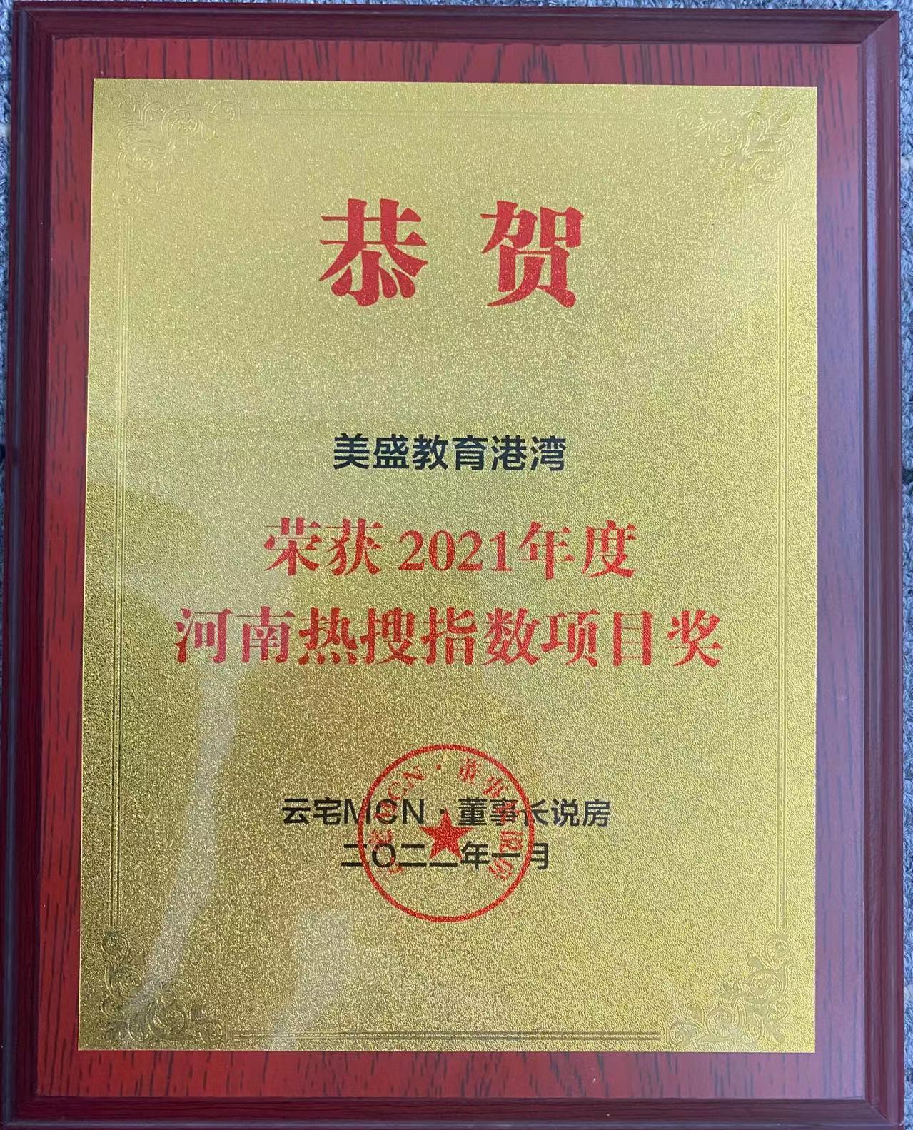 榮獲2021年度河南熱搜指數項目獎 美盛·教育港灣
