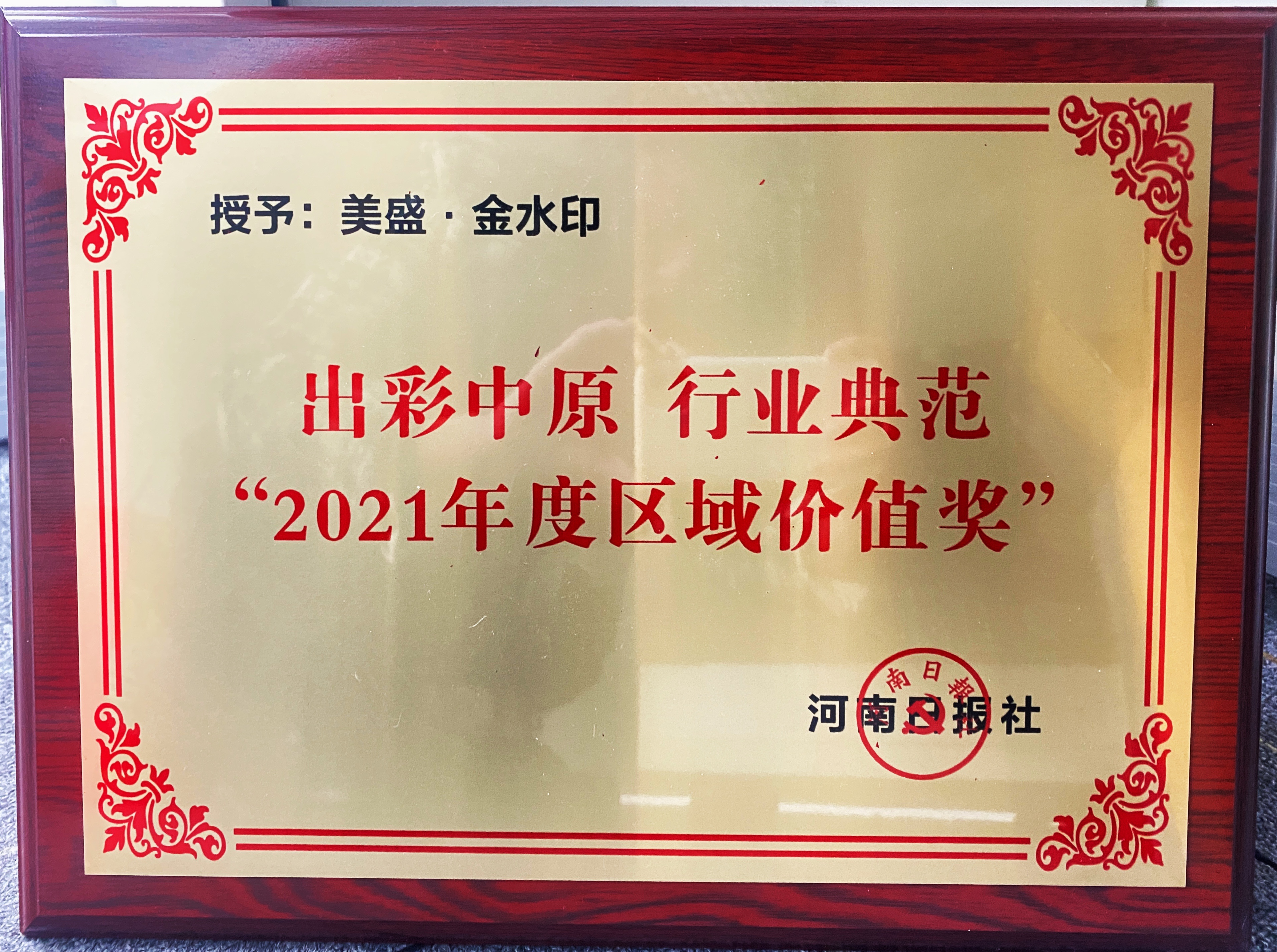 出彩中原 行業典范 2021年度區域價值獎 美盛·金水印