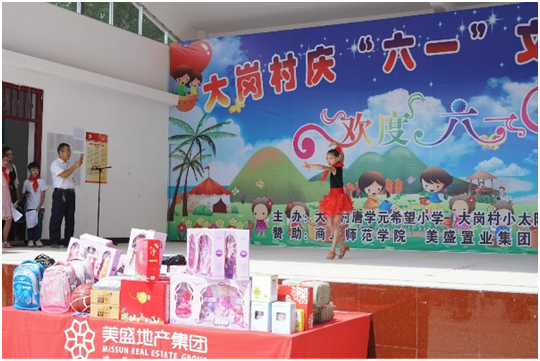 綠樹陰濃夏日長,在天朗氣清的季節里,美盛地產集團高管及員工代表于6月1日再次來到商丘睢縣蓼堤鎮大崗村“唐學元希望小學”,參加了學校組織的六一兒童節文藝聯歡會并為孩子帶去了節日禮物。