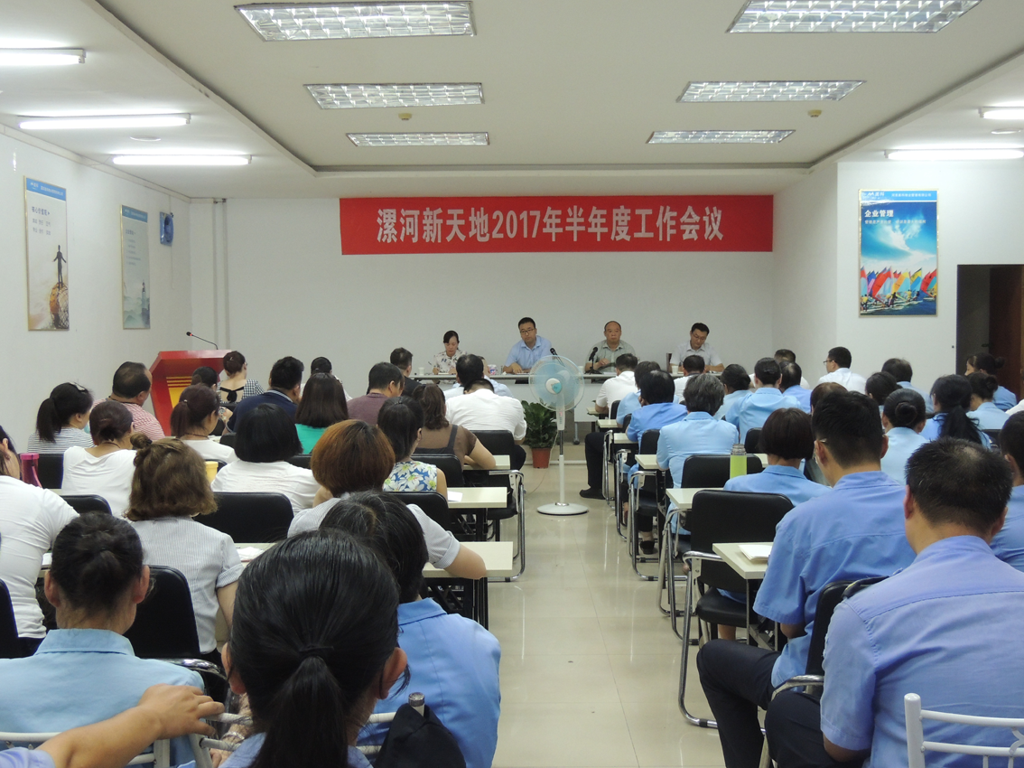 2017年7月14日上午,漯河新天地在公司三樓大會議室圓滿召開了“漯河新天地2017年半年度工作會議”。公司領導、各部門負責人及員工代表等90余人參加了本次會議,會議由副總經理婁彥民主持。