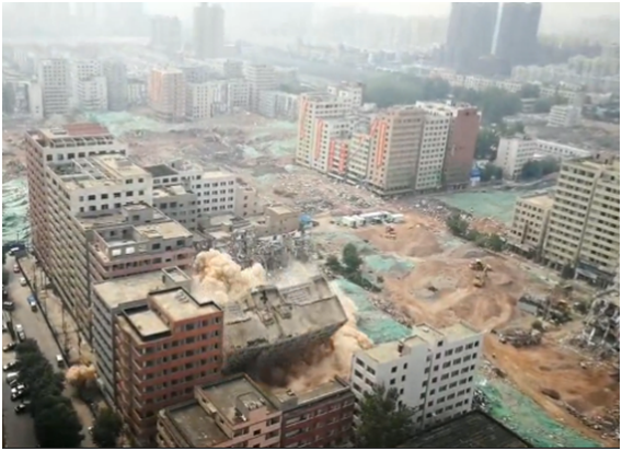 此次爆破共有三家爆破公司共同承擔對陳寨36棟居民樓的集中爆破任務,分為3個標段,圍繞文化路以西、國基路以南、中方園路以東、南一街以北陳寨村村域范圍內的36棟樓房,是國內規模最大的樓房拆除爆破,消耗2.5噸炸藥,7.5萬發雷管,總計爆破9.8萬平方米。