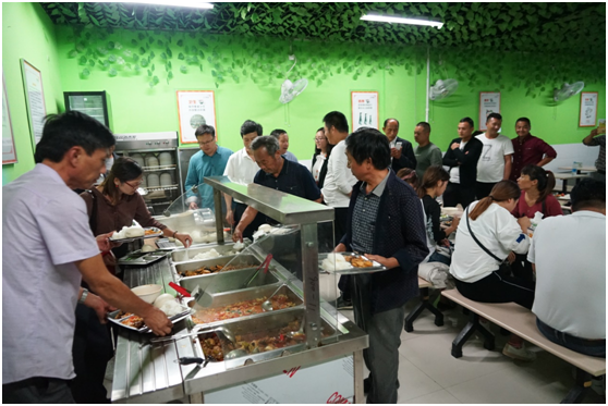 參觀結(jié)束后,大崗村的老師們和美盛員工代表一起在員工食堂用餐,食堂的師傅們?yōu)楦魑焕蠋煖?zhǔn)備了豐盛的午餐