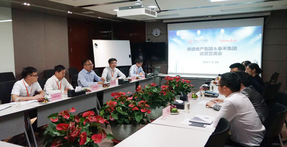 2017年9月28日下午,美盛地產(chǎn)集團(tuán)與泰禾集團(tuán)(上市公司,全國地產(chǎn)30強(qiáng))鄭州泰禾置業(yè)集團(tuán)有限公司運(yùn)營交流會在集團(tuán)大會議室舉行,美盛地產(chǎn)集團(tuán)副總裁韓震洲、鄭州泰禾置業(yè)集團(tuán)有限公司總經(jīng)理助理任軍,以及雙方運(yùn)營團(tuán)隊(duì)出席了本次活動。