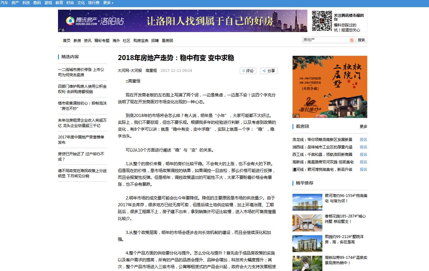 到底2018年的市場將會怎么樣?有人說,明年是“小年”,大家可能都不太好過。實際上,我們不要悲觀,但也不要樂觀。根據(jù)我多年的經(jīng)驗進行判斷,以及考慮到政策的變化,有8個字可以講:就是“穩(wěn)中有變,變中求穩(wěn)”,實際上就是一個字:“穩(wěn)”,穩(wěn)字當頭。