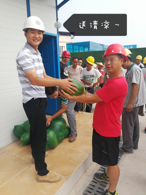 盛夏的八月,考慮到在烈日下工作的工人,李龍為他們送去西瓜、礦泉水等解暑。細節見人品,確認過眼神,是“暖男”無疑了。