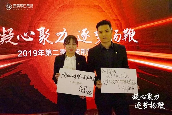 全員沖刺,營(yíng)銷負(fù)責(zé)人互贈(zèng)誓言,相互鞭策,誓要完成任務(wù)目標(biāo),這種沖刺的正能量和決心感染了現(xiàn)場(chǎng)的每一位營(yíng)銷人。