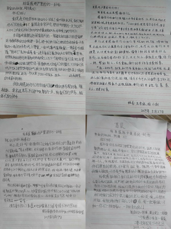 當(dāng)天,孩子們還以書信形式回憶起此前訪問美盛地產(chǎn)集團時的情景——