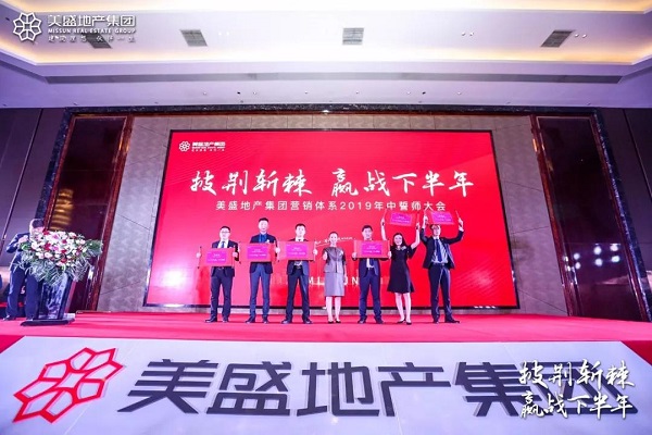 美盛地產集團營銷體系2019年中誓師大會在燃情、熱血、激昂的氛圍中圓滿舉行!滿載榮光的2019已然過半,充滿希望和挑戰的下半年已經拉開帷幕。贏戰2019下半年,沖刺百億,美盛將再續熱銷傳奇!