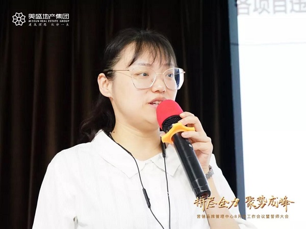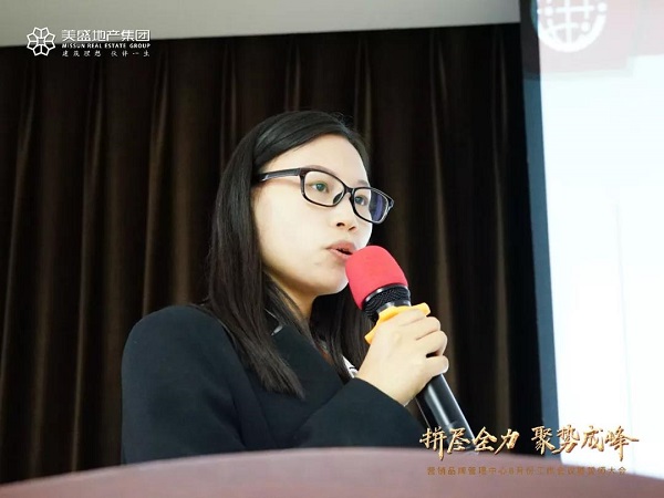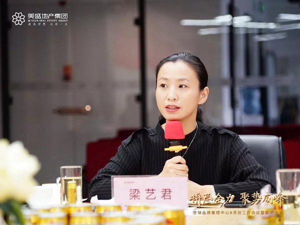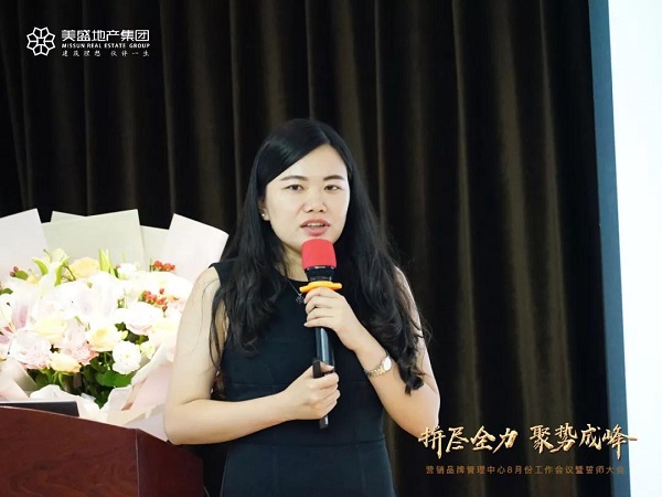美盛地產(chǎn)集團(tuán)營(yíng)銷管理中心總經(jīng)理梁藝君女士在會(huì)議上表示:"面臨著8月份新目標(biāo)以及年終業(yè)績(jī)目標(biāo),各項(xiàng)目營(yíng)銷負(fù)責(zé)人,在集團(tuán)高戰(zhàn)略、快發(fā)展的目標(biāo)下,要時(shí)刻保持對(duì)業(yè)績(jī)的敬畏之心,敏感洞察當(dāng)前房地產(chǎn)市場(chǎng)。"