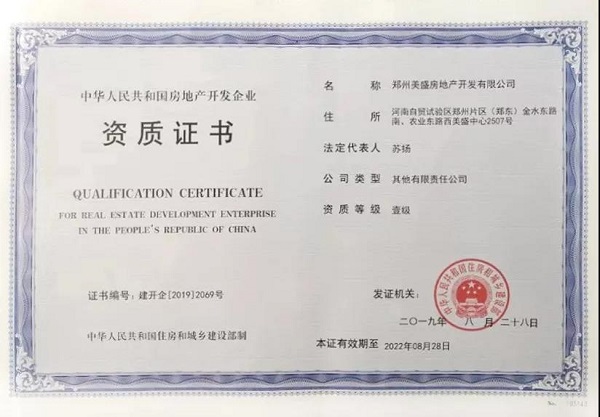 此次,美盛地產(chǎn)集團在眾多參與評選的實力企業(yè)中脫穎而出,榮獲房地產(chǎn)開發(fā)企業(yè)國家一級資質(zhì)。這不僅是對美盛在房產(chǎn)開發(fā)中專業(yè)能力的認(rèn)可、對美盛地產(chǎn)集團建筑工程質(zhì)量、施工保障體系等工程品質(zhì)的肯定,更是對美盛力量的至高褒獎。