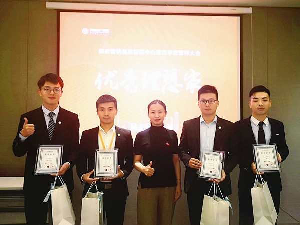 在“金九銀十”的這場攻堅戰中,美盛營銷人旗開得勝,綻放華彩。為表彰在9月份斬獲驕人業績的美盛營銷精英,大會現場頒發了月度大獎杯、品質案場獎、優秀銷管團隊獎、優秀策劃團隊獎、優秀管理獎、優秀營銷負責人、優秀銷售經理、優秀策劃人、月度銷冠、優秀渠道個人獎、攻堅克難獎、最佳新人獎、優秀個人獎、優秀理想家等獎項。在伙伴們祝福與贊許的目光中,精英們邁著堅定的步伐走上領獎臺,與大家分享這一喜悅時刻,今天,他們收獲的累累碩果無不是用辛勞與汗水澆灌!他們用實際行動告訴每一位伙伴:行勝于言,努力才是硬道理!