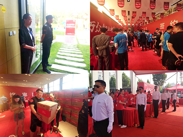 “您好!請問您是來參加選房活動(dòng)的嗎?”當(dāng)客戶車輛緩緩駛?cè)霑r(shí),首先會(huì)迎來入口禮賓崗的行禮致敬與親切問候。在引導(dǎo)車輛行駛方向的同時(shí),通過對講系統(tǒng)通報(bào)人數(shù)特征和車牌信息,為后續(xù)崗位的服務(wù)接續(xù)做好充足的準(zhǔn)備。停車場內(nèi)車場崗秩序隊(duì)員接到禮賓崗信息,由崗位小跑入停車場,用標(biāo)準(zhǔn)姿勢引導(dǎo)車輛停放。