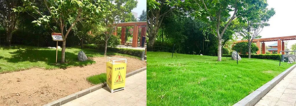 廣場(chǎng)植被全面更新,喬灌木統(tǒng)一修體并內(nèi)嵌燈光,光影交錯(cuò),上演綠色時(shí)尚。