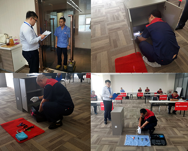 入戶維修場(chǎng)景模擬演練,考核選手從敲門禮貌、詢問業(yè)主、征得同意后穿鞋套到入戶維修等一系列維修流程。