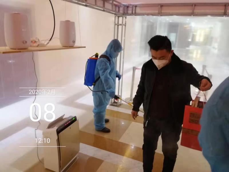 從1月22至今,日常消殺消毒工作中,每天早上負責進出口“鞋底消毒”工作。高峰期過后,他又背起每桶30公斤消毒劑出現(xiàn)在公共區(qū)域及業(yè)主戶內(nèi)進行消毒,并提醒業(yè)戶注意事項,完成消毒工作后,樓層的清潔巡視也是每天的重要工作。