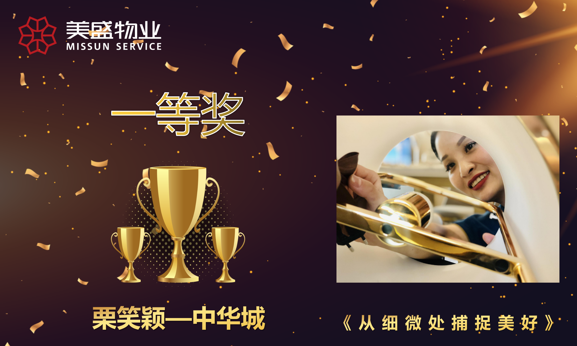 “精彩美盛,定格你的美”主題攝影比賽由美盛物業(yè)管理中心人力行政部主辦,旨在展示美盛物業(yè)員工對待事業(yè)的執(zhí)著追究求和對生活的無限熱愛,增強員工的責任感、使命感及主人翁精神,激發(fā)團隊活力,傳播正能量,將日常的瞬間定格為永久的美。