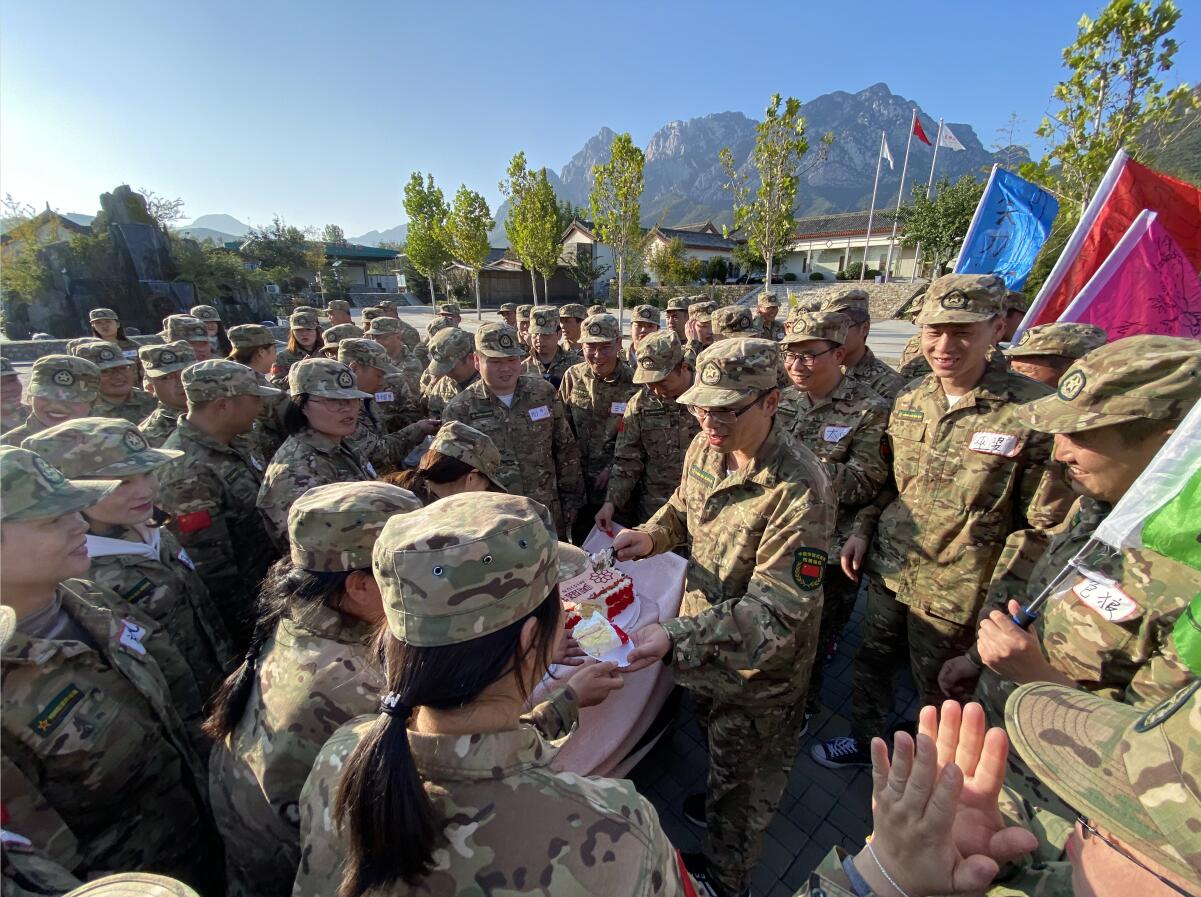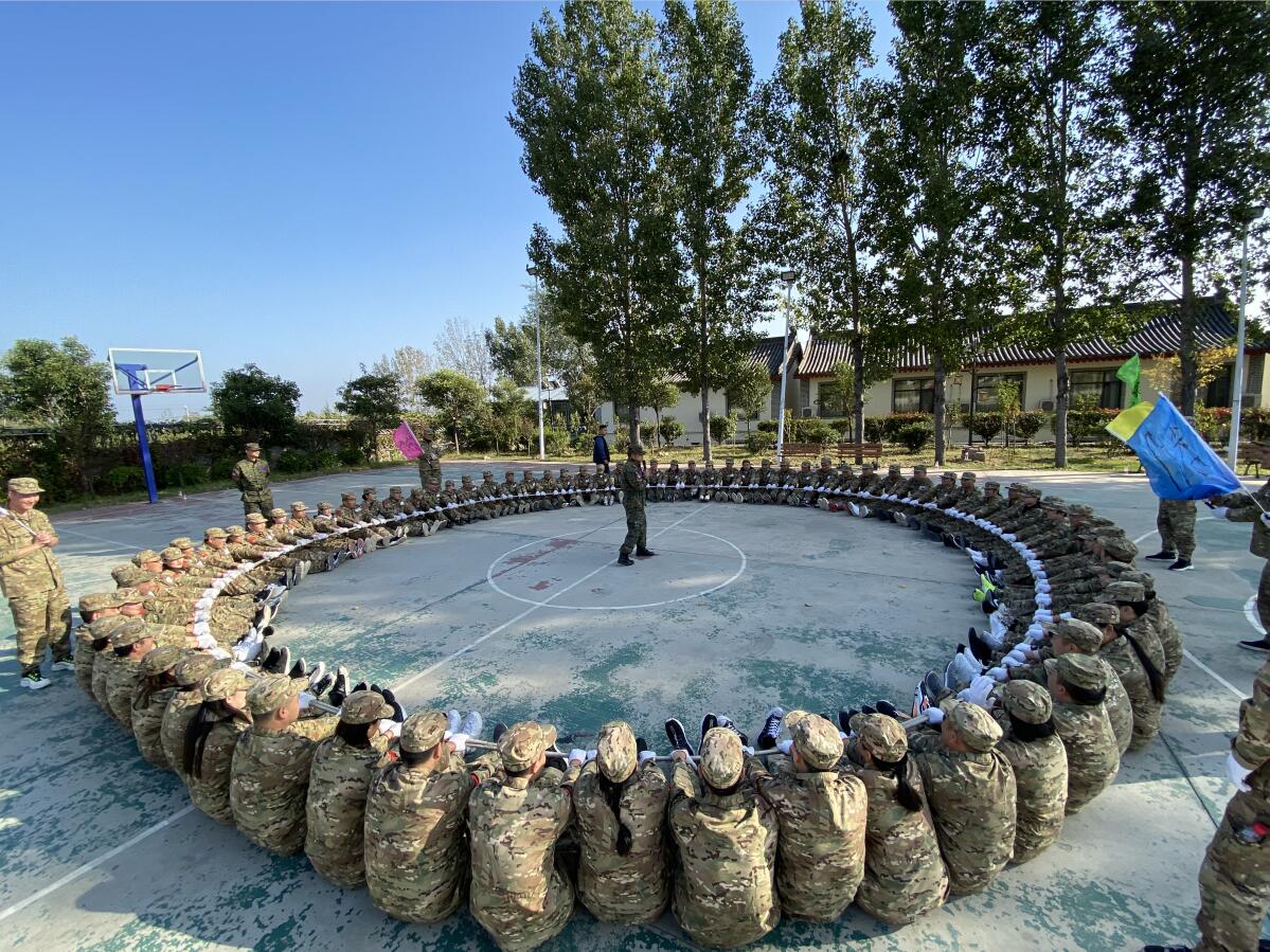 進行隊形隊列等軍事科目訓練的同時還開展了摸石過河、百發百中、挑戰150等訓練項目。雖然在150秒內有隊伍沒有完成全部項目,但是大家都沒有放棄,一個項目一個項目地攻克,直至完成所有項目。