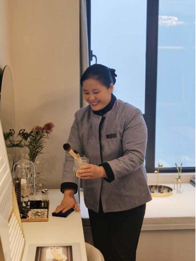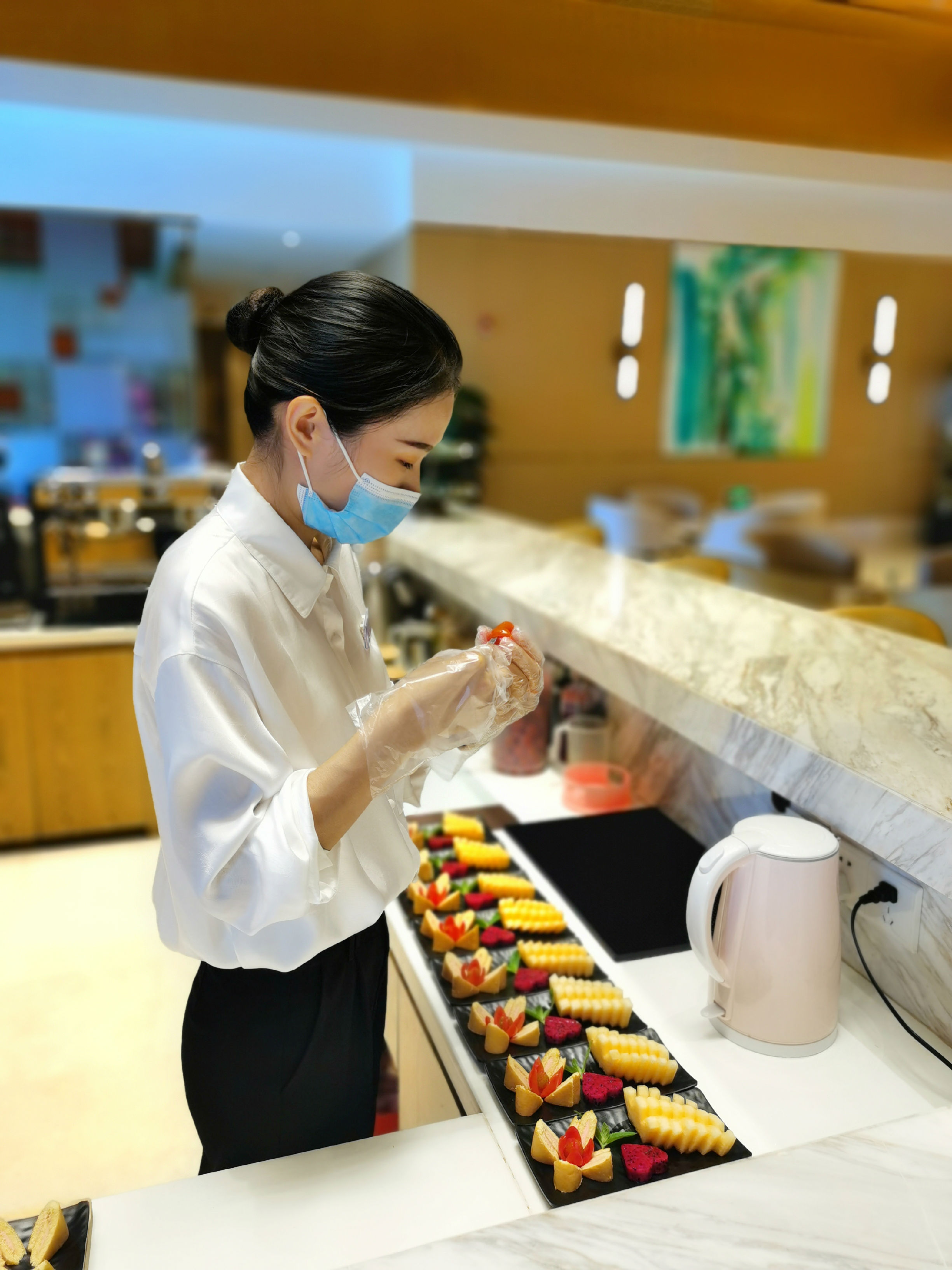 美盛象湖100客服部呂金,2020年4月初入職美盛象湖100,剛來就開始忙著售樓部開放等工作,時間緊任務重,從組建團隊、挑選物資、客服禮儀培訓、技能培訓、飲品創(chuàng)意、點心制作和公司各項制度培訓、文件整理等,都要自己親力親為,一個月下來竟無意間瘦了八斤,一切的努力換來項目的順利進行!對她來講八點能下班是一種奢侈,十點能離開售樓部她就會很滿足,工作忙完之后,還要擠時間去翻閱雜志或者上網(wǎng)搜索關于點心和飲品的創(chuàng)意制作,不同的季節(jié)需要不同的飲品和點心,只希望做出來呈現(xiàn)給客戶的成品,能讓人發(fā)自內(nèi)心的滿意,為項目增添色彩!