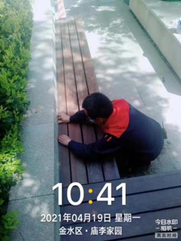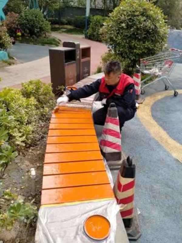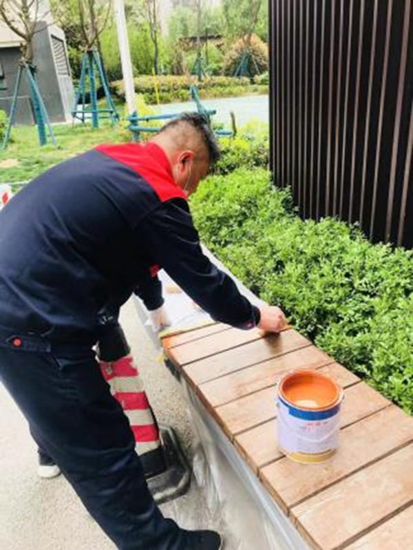給小區的長條凳刷上油漆,不但美觀、醒目,還起到防止長條凳被氧化的作用,延長使用壽命。美化小區從細節做起,業主也紛紛為項目這種注重細節的服務點贊。