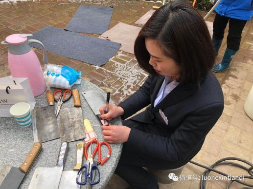 3月5日學習雷鋒日,尚郡小區(qū)舉辦學習雷鋒好榜樣的社區(qū)文化活動,免費為業(yè)戶清洗地墊、磨刀、磨剪子活動,曹亞美提前微信、電話,入戶通知業(yè)戶并把業(yè)戶需要的剪刀、地墊拿到活動現(xiàn)場讓工作人員處理并把刀具剪刀貼上標簽,以免混淆。