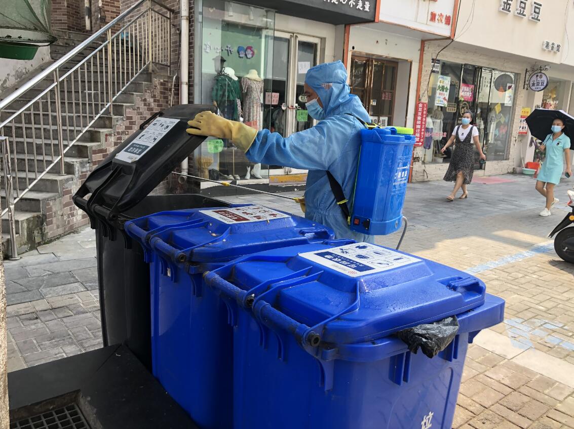 現場一遍遍消殺、消毒,維持秩序的物業(yè)工作人員