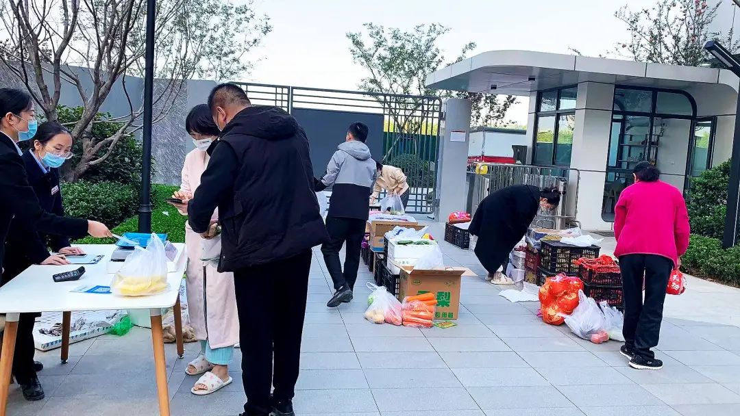為了充分保障業主的生活物資采購需求,美盛象湖100金悅園物業快速啟動生活物資保供服務,聯動蔬菜商家進院銷售,把“農貿市場”開到了小區內,蔬菜瓜果、肉奶蛋禽等各類生鮮用品應有盡有。